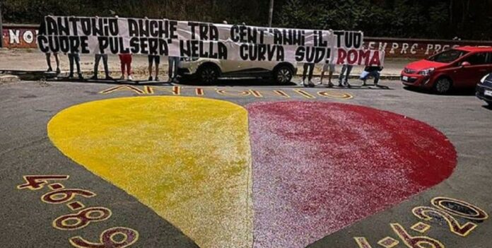 “Antonio anche tra cent’anni il tuo cuore pulserà nella Curva Sud“, l’emozionante messaggio scritto sopra lo striscione dai supporter romanisti.