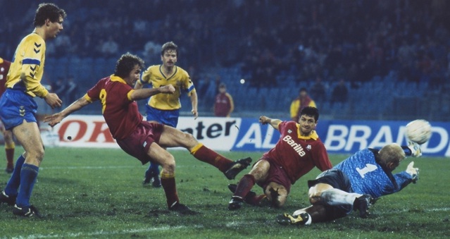 Contro il Broendby all’andata la Roma non perse, ma pareggiò 0-0, infatti in quella competizione rimase imbattuta fino alla finale contro l’inter.