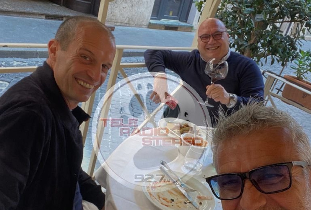 Ore 15:25 – Massimiliano Allegri immortalato a pranzo con Ubaldo Righetti e Riccardo “Galopeira” Angelini, speaker di Tele Radio Stereo. L’allenatore era a Roma per motivi personali, ma le voci sul suo possibile approdo in giallorosso non accennano a placarsi.