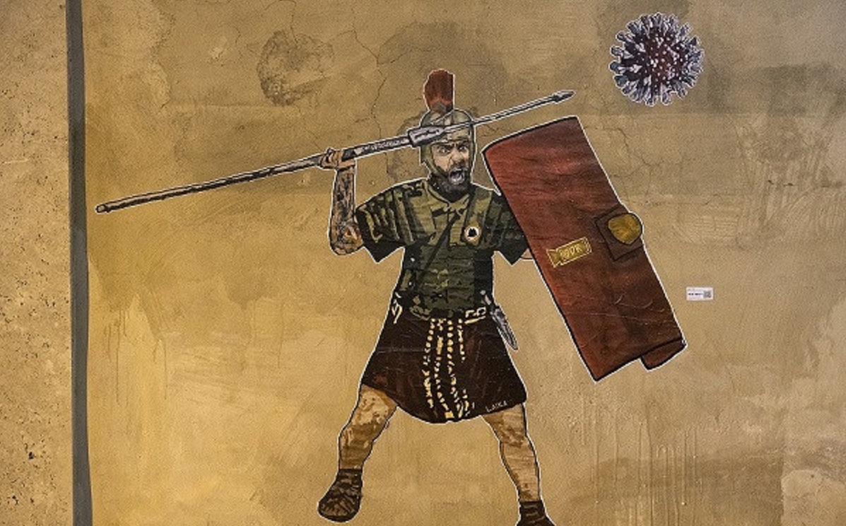 Ore 11:10 – In via dell’Arco della Fontanella, nei pressi di Corso Vittorio Emanuele II, è apparso un murales dedicato a Daniele De Rossi, dimesso ieri dallo Spallanzani, dove era ricoverato per una polmonite causata dal Covid-19. Il murales della Street Artist Laika raffigura l’ex capitano in versione gladiatore che combatte contro il virus.