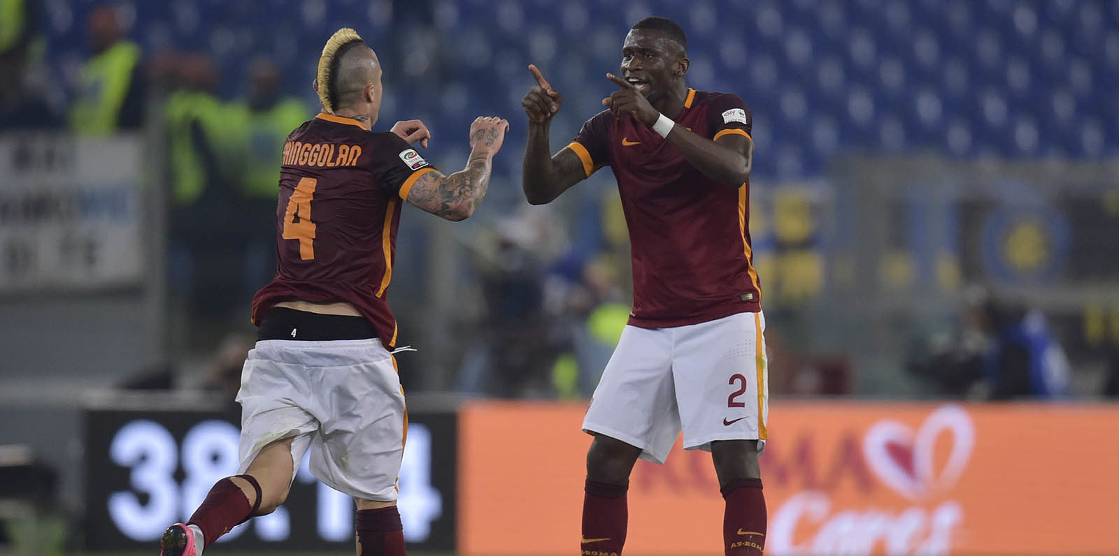 Finalmente la maglia della Roma si tingerà di scritte a seconda del calciatore sul quale campeggeranno. Inter e Chelsea, si sono decisi a sponsorizzarle, ma anche Juve, Milan e Napoli ci stanno pensando. Rudiger e Nainggolan ne avranno due: “Condizione dettata”, quella apposta dal Chelsea e accanto, “L’abbiamo visto prima noi”, quella dell’Inter. Manolas, “Accordo raggiunto, forse” per l’Inter. Per la prima volta anche l’allenatore Spalletti avrà il main sponsor sulla giacca, “Precontrattualizzato”, sempre ad opera dell’Inter. Il Napoli pensa di scrivere qualcosa del tipo, “Lo vorremmo”, su Rui e Szczesny; la Juve vorrebbe mettere “Ci siamo fatti sotto” su Paredes. Il Milan, “Interessati, probabilmente” su Dzeko.