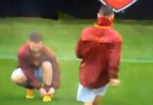 (VIDEO) Totti “innaffia” De Rossi nel riscaldamento di Roma – Parma