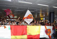 Roma, un centinaio di tifosi a Fiumicino per incoraggiare la squadra