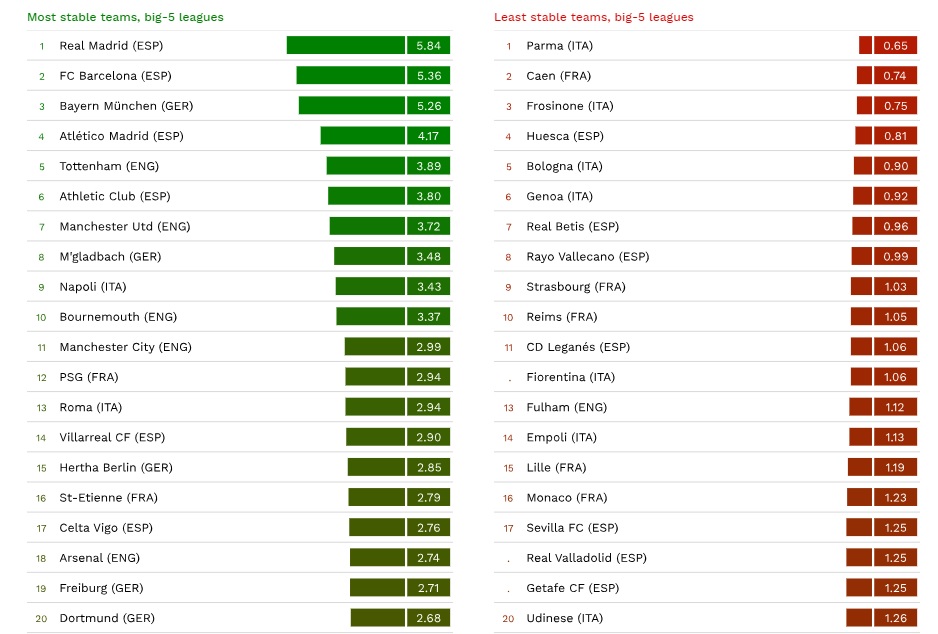 Non mi sfugge comunque che, a parte la Juve (stranamente…), le prime quattro della classifica della stabilità sono anche le prime del Ranking Europeo. A conferma del fatto che la stabilità è un traguardo da perseguire se vuoi essere un top team.