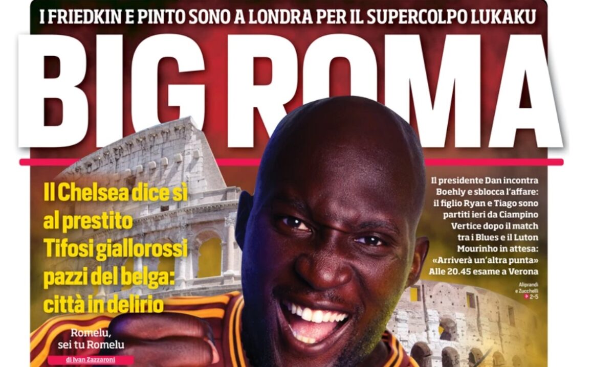 “BIG ROMA“, titola a tutta pagina il Corriere dello Sport, sia nell’edizione nazionale che in quella romana. “I Friedkin e Pinto sono a Londra per il supercolpo Lukaku. Il Chelsea dice sì al prestito, tifosi pazzi del belga, città in delirio“.