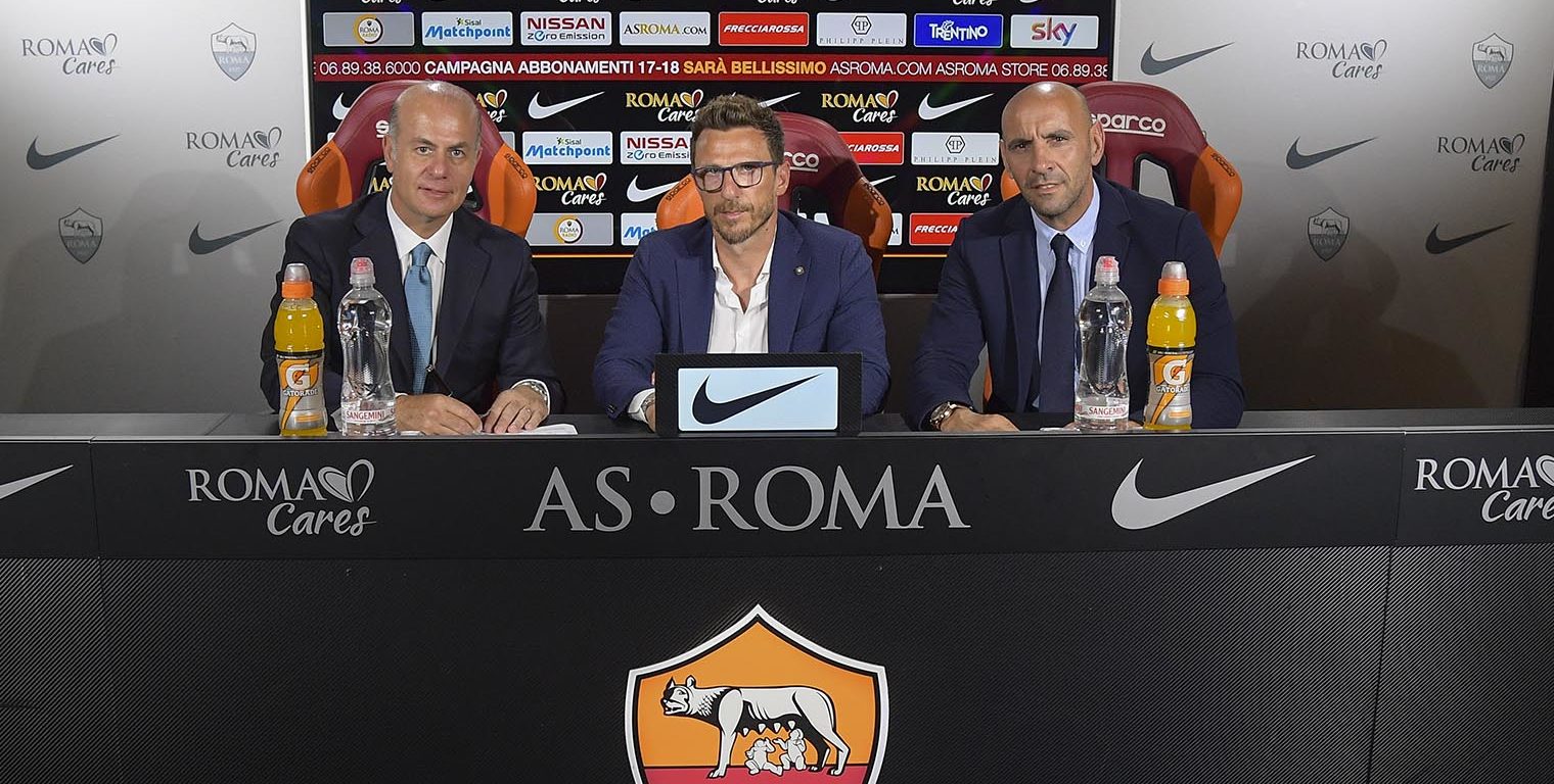 LE PAROLE DEL MISTER NELLA CONFERENZA DI PRESENTAZIONE – Eusebio Di Francesco parla per la prima volta da allenatore della Roma nella conferenza stampa di presentazione che si svolge questo pomeriggio a Trigoria. Il tecnico abruzzese, accompagnato dal ds Monchi e dall’ad Gandini, risponde alle domande dei cronisti raccontando le tappe del suo approdo in giallorosso e svelando alcune novità sul suo progetto: