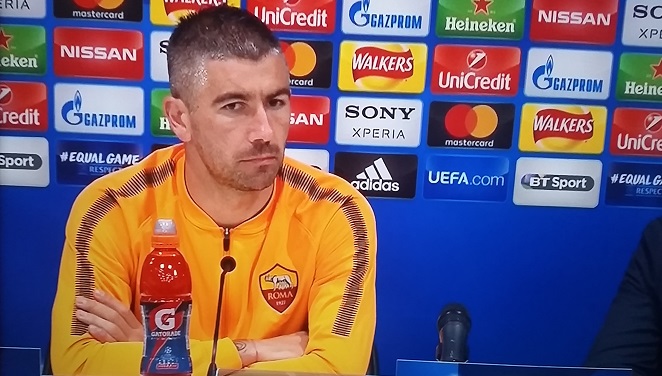 ULTIME AS ROMA – Il terzino giallorosso Aleksandar Kolarov interviene insieme al suo allenatore nella conferenza stampa di Champions alla vigilia della partita contro il Real Madrid che si giocherà domani sera, ore 21, allo stadio Olimpico. Ecco le parole del calciatore serbo: