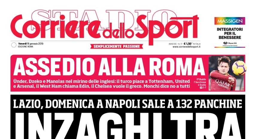 ULTIME NOTIZIE AS ROMA – “Assedio alla Roma“. Apre così la prima pagina del Corriere dello Sport nell’edizione romana, con i gioielli della squadra giallorossa che, secondo il quotidiano, sarebbero finiti nelle grinfie dei principali top club europei.