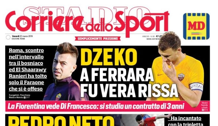 ULTIME AS ROMA – Il Corriere dello Sport oggi in edicola torna ad occuparsi della lite tra Dzeko ed El Shaarawy avvenuta durante l’intervallo di Spal-Roma, partita che poi la squadra di Ranieri ha perso per due a uno.