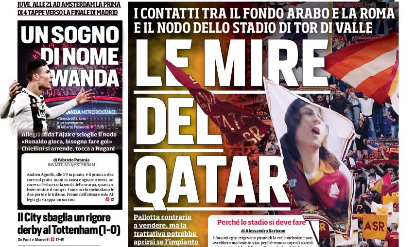 ULTIME NOTIZIE AS ROMA – Il Corriere dello Sport insiste nonostante le smentite di James Pallotta di ieri e questa mattina rilancia: “Le mire del Qatar”, titola oggi il quotidiano a tutta pagina.