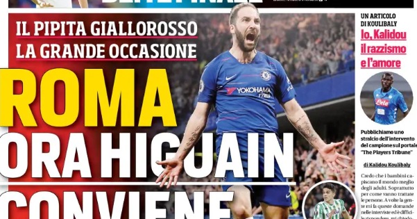 ROMA HIGUAIN CORRIERE DELLO SPORT – Gonzalo Higuain giallorosso. Apre così l’edizione romana del Corriere dello Sport oggi in edicola. Torna quindi prepotente l’idea di un approdo in giallorosso dell’attaccante argentino, tornato alla Juventus dopo una stagione deludente prima al Milan e poi al Chelsea.