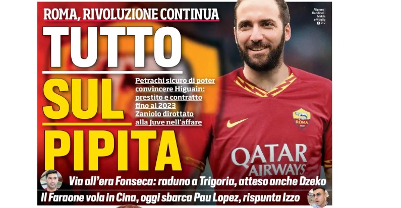 Il titolo non lascia spazio a interpretazioni: “Roma, tutto sul Pipita”. Stando a quanto scrive il giornale, il nuovo direttore sportivo giallorosso è convinto di riuscire a strappare il sì dell’argentino.