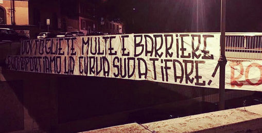 NOTIZIE ROMA CALCIO – La Curva Sud, dopo le voci degli ultimi giorni su una possibile rimozione delle barriere allo Stadio Olimpico in vista delle gare della Nazionale Italiana di Rugby, torna a esprimere il proprio pensiero tramite uno striscione esposto nella notte in zona Colosseo. Questo il testo: “Voi togliete multe e barriere e noi riportiamo la Curva Sud a tifare!“.