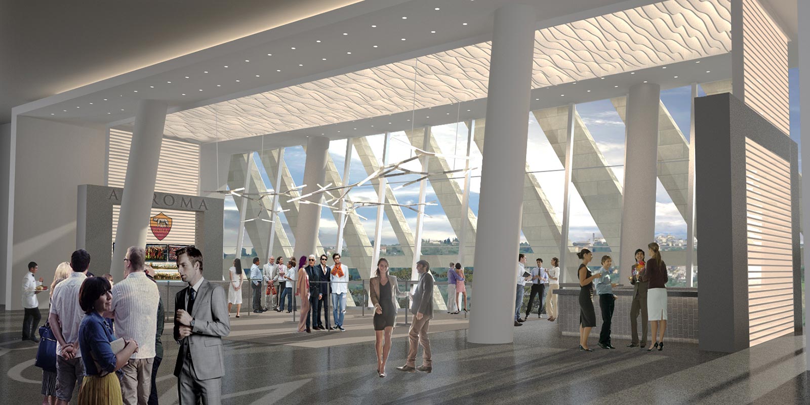 Ore 11:20 – E’ il momento dell’architetto, Den Meis, che spiega il nuovo stadio giallorosso: “Costruire uno stadio del genere a Roma è un’opportunità unica per noi architetti. L’ispirazione del design: sarebbe impossibile progettare qualcosa a Roma senza tener conto della storia della città e di un’icona che simboleggia la passione della gente, ma volevamo portare questa tradizione anche nel futuro. L’idea era prendere il riferimento del Colosseo e sviluppare uno stadio secondo questi criteri, con le tribune a ridosso del campo. Volevamo uno stadio dedicato solo al calcio, che potesse rifarsi a questa città e ai monumenti del passato, dando un’impronta più moderna. Le tribune sono su più livelli e sono più ripidi, creando un’effetto muro e incuteranno timore agli avversari. Sul sito, abbiamo individuato una zona adatta. La vicinanza al fiume ci consente di sollevare lo stadio, dando l’idea di qualcosa di importante. Le tribune sono 7 metri sopra il campo e questa posizione rialzata ci consente di dare una vista sulla città. Non possiamo sottolineare l’energia della Curva Sud: la nuova Curva sarà rilevante nella nuova costruzione. Un area di 14 mila posti, in cui i tifosi potranno identificarsi.”