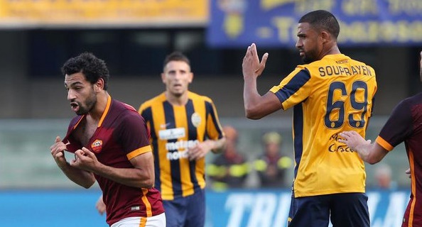 PREVEDIBILE E FIACCA – Mandorlini sistema con astuzia la trappola: il Verona si abbassa prudentemente davanti a Rafael con il 4-5-1. La Roma fatica perché non alza il ritmo quanto dovrebbe e perché, a parte Dzeko, davanti i giallorossi sono statici e sciatti. Proprio il centravanti, e lo farà fino all’ultimo dei 4 minuti di recupero, cerca di cucire il gioco che però non si vede.Nainggolan si sveglierà solo nella ripresa, De Rossi sta troppo basso e Torosidis non avanza quasi mai. Pjanic, spesso presente dietro a Dzeko nel 4-2-3-1, ci mette un po’ d’inventiva. Dietro pochi rischi sulle ripartenze gialloblu. Solo Florenzi, attaccato da Juanito, a volte non copre la zona di appartenenza. Ma terzino, ricordiamolo, non è.