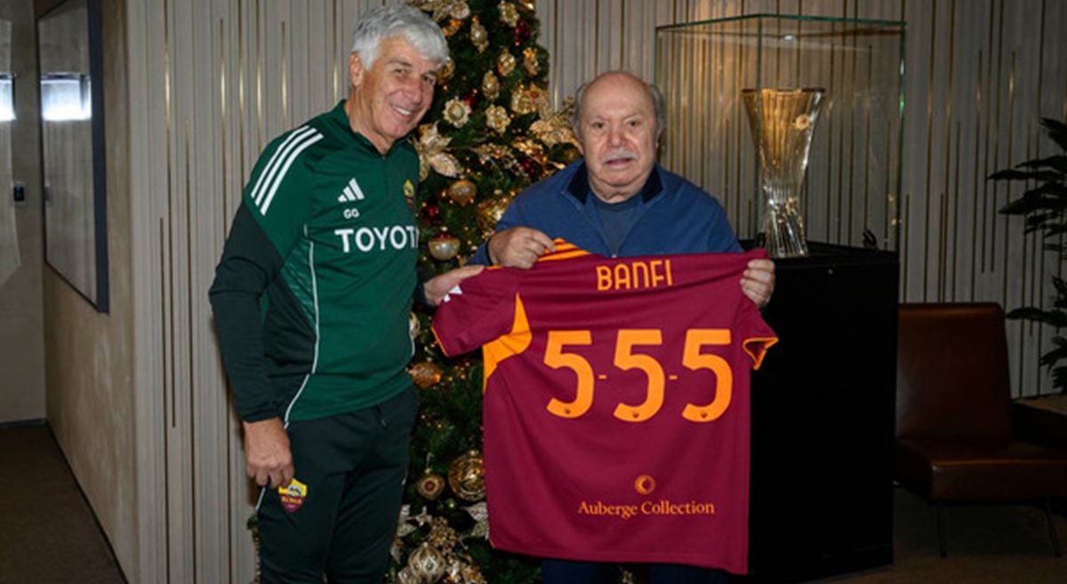Una visita speciale a Trigoria: oggi la squadra ha accolto il noto attore, tifoso giallorosso, Lino Banfi. Il popolare attore pugliese, famoso per aver interpretato il ruolo dell’allenatore Oronzo Canà, aveva espresso in una recente intervista il desiderio di conoscere Gian Piero Gasperini e i calciatori della Roma.