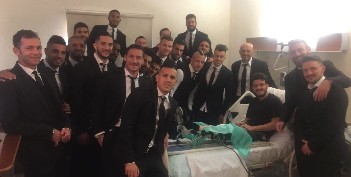 ULTIMISSIME AS ROMA – Visita a sorpresa per Alessandro Florenzi: questa mattina a Villa Stuart tutta la squadra giallorossa ha fatto una gradita sorpresa al calciatore, presentandosi in blocco nella camera dell’esterno romanista.