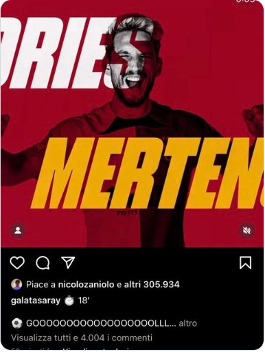 “…l’attaccante della Roma che ha messo il suo “mi piace” alla foto di Mertens che esultava dopo un gol realizzato con la maglia del club turco…”