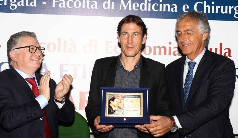 AS ROMA NEWS (Gasport, D. Stoppini) – E poi a Roma va così. Va che l’aula magna di Economia, università di Tor Vergata, comincia a cantare all’arrivo di Rudi Garcia: «Ooohhh…vinceremo il tricolor». Va che il rettore lascia l’aula con la maglia di Francesco Totti sotto il braccio, maglia che l’allenatore francese aveva portato in dono a Gianni Rivera: troppo prezioso, evidentemente, il trofeo. Un mercoledì in cattedra davanti a 800 studenti. Più o meno come un mercoledì in curva per Garcia, che ha ricevuto il premio «Etica nello sport», lui tra gli altri dopo Prandelli (fischiatissimo quando il suo volto è apparso in una clip), Ferguson e Platini. Motivazione? Nello scorso febbraio, mentre Edy Reja con una battuta goffa si augurava infortuni in casa Roma nella settimana pre derby, Garcia replicò: «Noi allenatori siamo prima di tutto educatori».