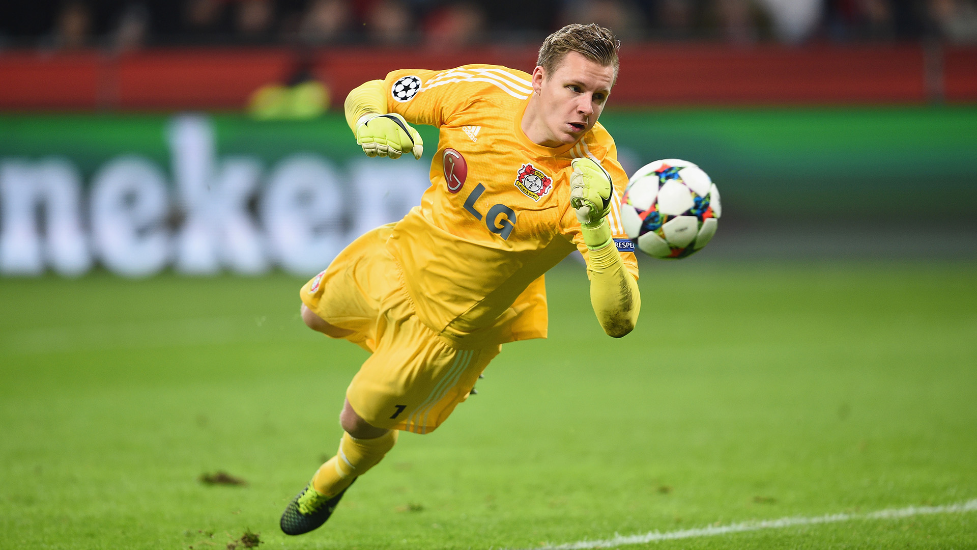 LEVERKUSEN, GERMANY - FEBRUARY 25:  Bernd Leno of Bayer Leverkusen in action during the UEFA Champions League round of 16 match between Bayer 04 Leverkusen and Club Atletico de Madrid at BayArena on February 25, 2015 in Leverkusen, Germany.  (Photo by Dennis Grombkowski/Bongarts/Getty Images)