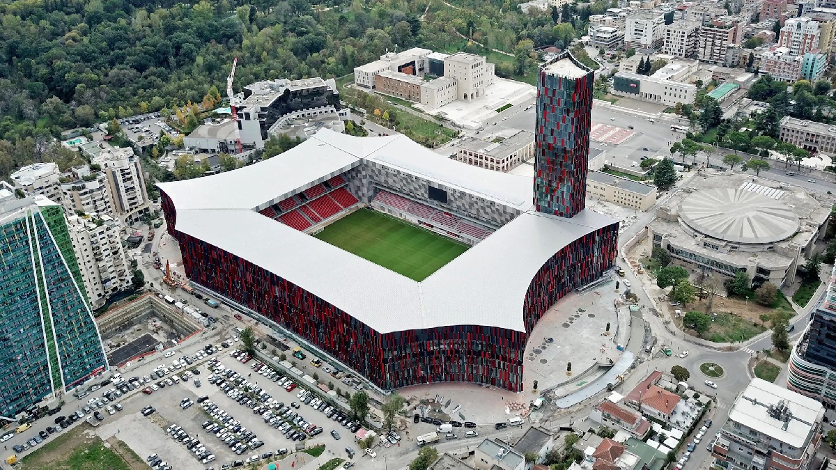 Ciao . Non è lo stadio di una squadra ma della nazionale albanese costruito dallo stato per gli obblighi verso l’uefa per poter ospitare le partite internazionali. Quello precedente era costruito ai tempi di Mussolini . Cmq è bellissimo ,e abbastanza capiente per un paese piccolo come Albania. ARCHEA ASSOCIATI l’ha a progettato.