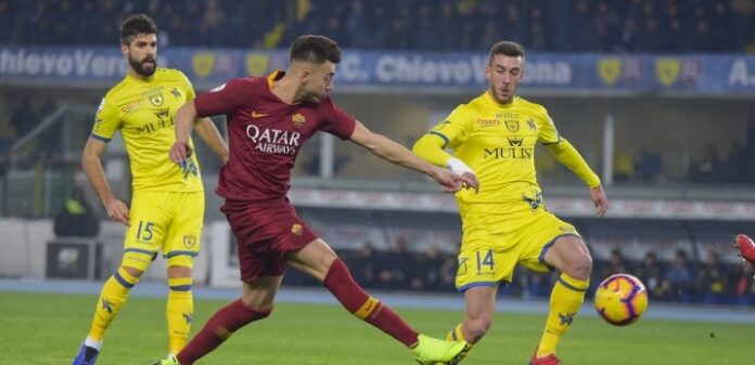 Riecco la Roma dopo il pari da mezzo bicchiere pieno con il Milan, ma una Roma diversa assai da quella dell’Olimpico. E non solo perché De Rossi e Florenzi sono in panchina, e Olsen, Pellegrini e Manolas a casa davanti alla tv come Under. Una Roma senza spina dorsale; o meglio, senza la spina dorsale titolare. Fatta eccezione per Dzeko, il capitano di serata. E il Cigno di Utrecht non si fa pregare per dare l’esempio e un senso alla partita, bissando a modo suo la rete in apertura di El Shaarawy, l’Ammazzachievo (settimo gol in carriera ai clivensi e undicesimo successo più due pareggi contro i veronesi) prima del ventesimo minuto di gioco.