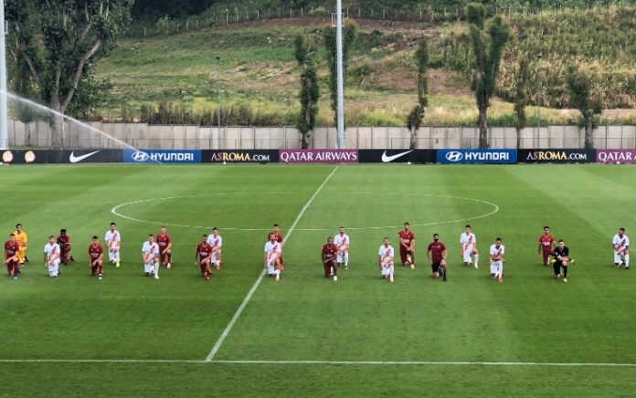 “I calciatori della Roma e Paulo Fonseca oggi si sono inginocchiati prima dell’allenamento per supportare #BlackLivesMatter”, ha scritto il club giallorosso.