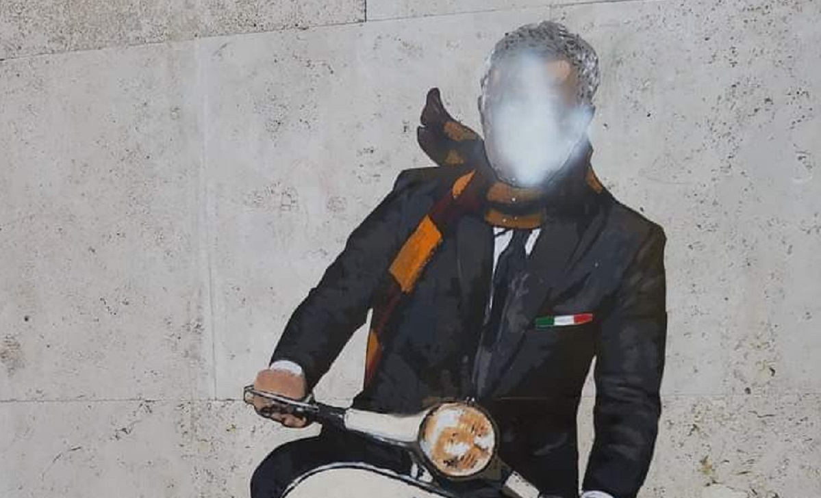 Il murale, realizzato a Testaccio a maggio, subito dopo l’annuncio dell’arrivo dello Special one alla guida dell’As Roma, raffigura l’allenatore su vespa 50 special, con la sciarpa giallorossa al collo. Un colpo di bomboletta bianca sopra il viso dell’allenatore.