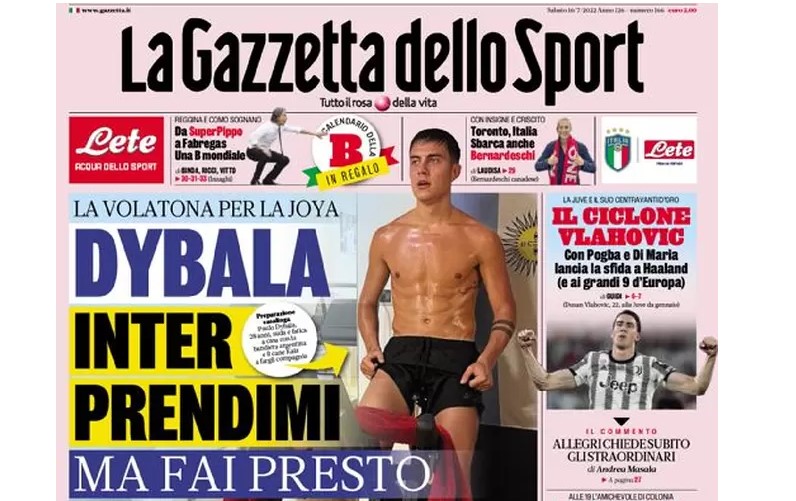 La prima pagina della Gazzetta, poi, con tanto di foto di Dybala, è esplicitamente porno…