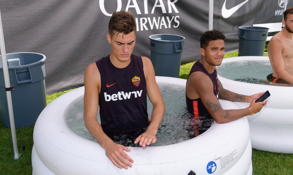 Kluivert col cellulare in mano che parla col padre in Piscina…a papa’ciavevi ragione se sta na pacchia a Roma allenamenti pochi tanti bagni e massaggi,manco a Saturnia se sta cosi’bene e chi ce torna all’Ajax,mo l’anno prossimo prende tutto in mano Totti sai che Tornei de Paddle che se famo