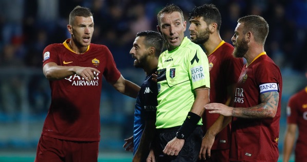 NOTIZIE ROMA CALCIO – Bravo l’assistente Longo a segnalare il fuorigioco in diverse occasioni di Caputo. Poi, al 35’ giusta l’ammonizione di Bennacer per un’entrata in ritardo su Santon, con la punizione trasformata da Pellegrini per il gol di Nzonzi.