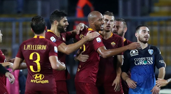 NOTIZIE ROMA CALCIO – «Quando salgono in area i più piccoli sono De Rossi e Manolas». Così Aurelio Andreazzoli dopo Empoli-Roma sabato sera, la partita che ha regalato a Di Francesco la quarta vittoria consecutiva, avviata dal settimo gol stagionale costruito su palla inattiva dai giallorossi: l’1-0 di Nzonzi. Alta, grossa e cattiva. Monchi immaginava una squadra così mentre la smontava e rimontava sul mercato, l’allenatore si è subito messo al lavoro in estate per insegnare ai suoi «giganti» come sfruttare i centimetri e adesso gli avversari, da Andreazzoli in giù, non sanno come opporsi. Su 16 reti segnate in campionato dal secondo miglior attacco dietro quello della juventus (18), ben sei, ovvero più di un terzo, sono nate dalle cosiddette «palle ferme».