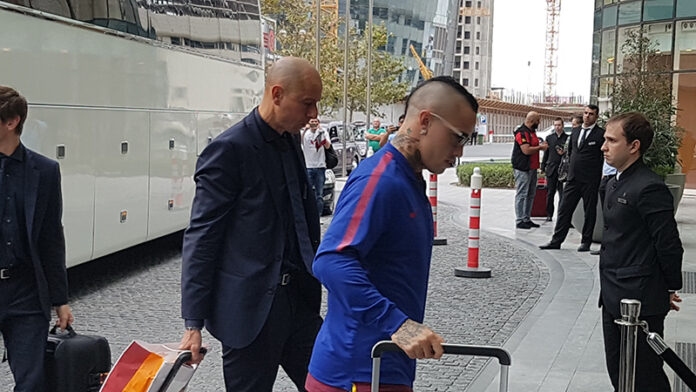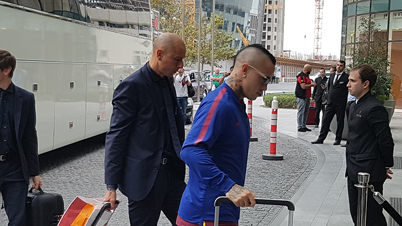 SQUADRA ARRIVATA IN AZERBAIJAN, DOMANI SI GIOCA – La Roma è atterrata da pochi minuti a Baku dove domani pomeriggio ore 18 italiane giocherà contro il Qarabag.L’arrivo della squadra giallorossa è stato immortalato in diretta da Radja Nainggolan che ha pubblicato su Instagram il video dell’atterraggio dell’aereo in terra azera.