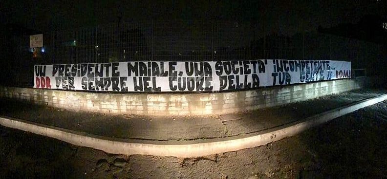 Peccato che ogni forma di contestazione adesso appare vuota e non incisiva, considerando lo storico di chi appende questo striscione. A voi probabilmente di Daniele non frega un cazxo, magari eravate pure quelli che lo insultavano e deridevano la società per il rinnovo di 2 anni fa, a voi interessa solo strumentalizzarlo per i vostri porci comodi.