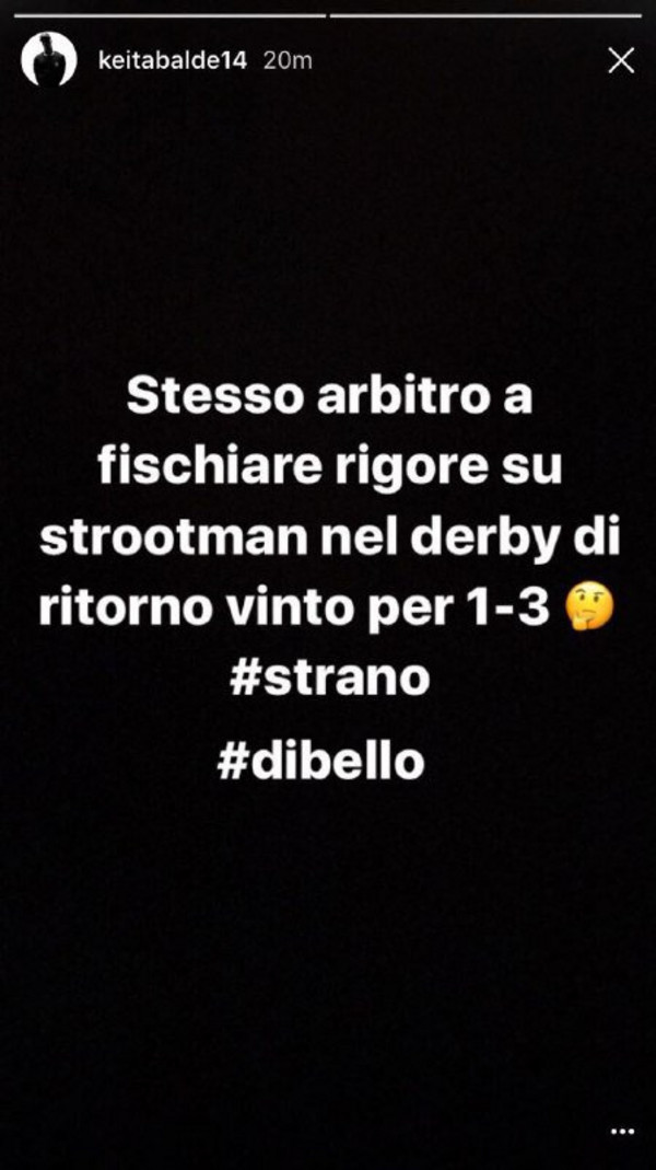 ULTIME NOTIZIE AS ROMA – L’attaccante della Lazio Keita Balde Diao ha polemizzato tramite i propri canali social ufficiali contro l’espulsione rimediata ieri nella gara contro l’Inter persa per 3-1 in cui l’attaccante senegalese ha rimediato il secondo giallo per simulazione. Nell’occhio del ciclone la decisione dell’arbitro Di Bello, lo stesso addizionale che ha segnalato il rigore per la Roma nel derby dello scorso 30 aprile.