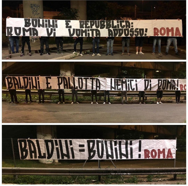 NOTIZIE AS ROMA – L’alito fetido della Roma che non vuole critiche e azzera i fatti lo senti sul collo già mentre scrivi. Ci sono gli argomenti proibiti, in questa città. I totem sacri, gli intoccabili, la Linea. Ecco, la Linea. Quella tracciata ogni mattina dalle nove radio locali, che aprono il microfono al ventre dei romani e ne eccitano gli istinti: ventiquattr’ore al giorno a parlare della Lazio, della Roma, di Roma. Primo comandamento: non si mette mai in discussione la Linea, non va sfiorata. Neanche con la forza del giornalismo di inchiesta, che documenta fatti e circostanze, rivela trame e svela orditi. Un pezzo di città non lo accetta. E quindi lo striscione “Bonini e Repubblica, Roma vi vomita addosso!”. E quindi, ancora, le scritte sui muri della mattina dopo: “Austini, Bonini, Mensurati, chi tocca l’As Roma muore!”. Perché Roma a volte è così, rigurgita di notte quel che mastica di giorno. Ci risiamo. È una storia che è già capitata, e che capiterà ancora.