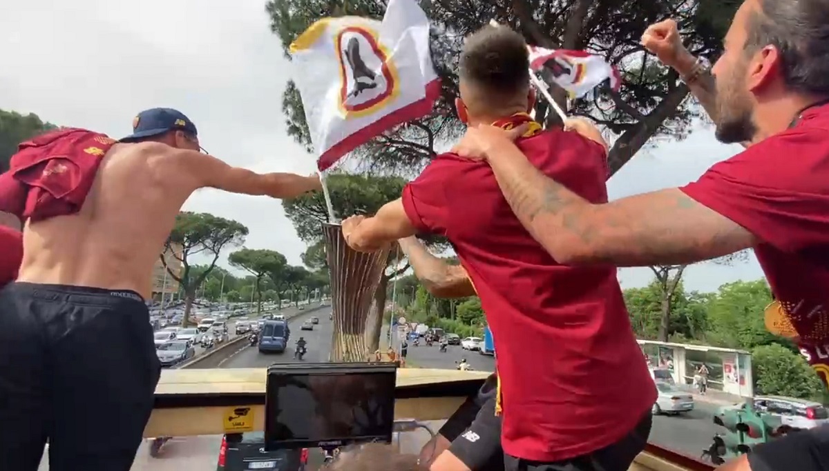 Ore 16:30 – I giocatori della Roma sono saliti sul pullman scoperto con la coppa al seguito. Ora si aspetta solo l’ok per cominciare il viaggio tra i tifosi fino al Circo Massimo.