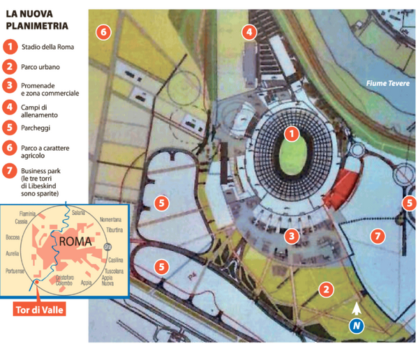 Già venerdì le Commissioni sarebbero state convocate per l’espressione dei pareri sulla delibera. Cassata, quindi, l’idea circolata nelle scorse settimane a Palazzo Senatorio che Municipi e Commissioni potessero essere accantonati e che fosse sufficiente il solo voto in Consiglio comunale. Come anticipato da II Tempo, poi, scompare definitivamente dal novero delle opere di interesse pubblico anche dalla nuova delibera il Ponte di Traiano sull’autostrada Roma-Fiumicino a Parco de’ Medici. Al suo posto, giusto come accenno, resta il Ponte dei Congressi con tutte le incognito enormi che quest’opera porta con se: tempi di realizzazione (rischio che per almeno 2 anni dopo l’apertura dello Stadio il Ponte non ci sia) e collocazione su un unico asse di accesso/uscita dal complesso sportivo (la nuova via del Mare/via Ostiense). La nuova delibera, poi, segna una enorme riduzione del valore delle opere pubbliche che Pallotta e Parnasi dovranno pagare: 120 milioni di euro a fronte dei 270 della precedente versione “mariniana” del progetto.