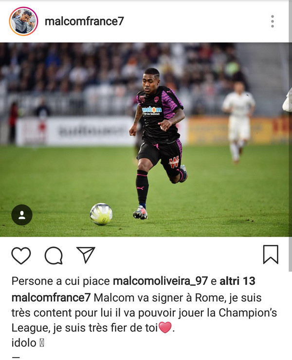 Malcom in arrivo: like al post da giallorosso