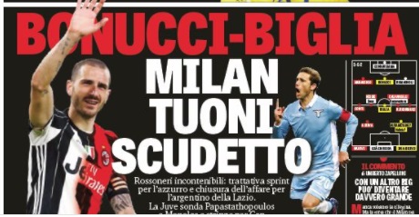 Bonucci è atteso già oggi a Milano: tutto è stato predisposto per le visite mediche. Poi la firma sul contratto da 6 milioni di euro netti all’anno. Da ieri la moglie del giocatore è impegnata nella ricerca della casa a Milano, assistita da un agente immobiliare. Ma è a un passo dai rossoneri anche Biglia, centrocampista della Lazio che finirà alla corte di Montella per 17 milioni di euro. Due colpi scudetto per un Milan che mette le carte in tavola: c’è anche lei nel ruolo di anti-Juventus.