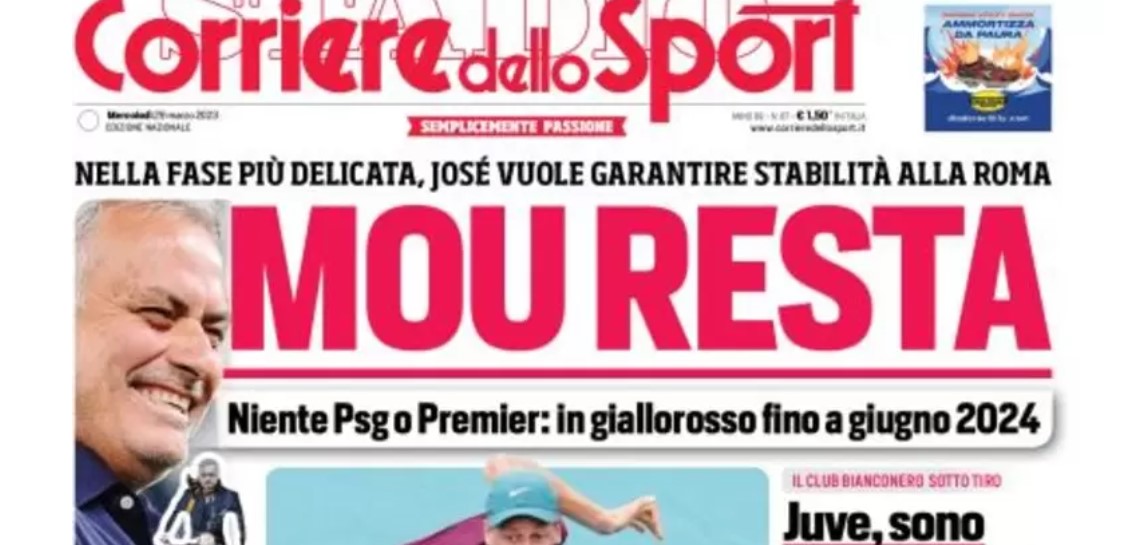 Lo scrive oggi il Corriere dello Sport (I. Zazzaroni), che nell’edizione odierna titola in prima pagina “MOU RESTA“. L’allenatore portoghese ha preso questa decisione già prima della sosta per gli impegni delle nazionali, a mente fredda, una scelta che garantirà stabilità al club in un momento cruciale della stagione.