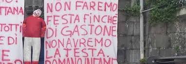 In un dedalo di case poco lontano dal cimitero delle Fontanelle è infatti apparso un manichino con una corda al collo che indossa una maglia della Roma. Accanto c’è uno striscione che recita così: «Ciro, non faremo festa finché di Gastone non avremo la testa. Romanista infame».