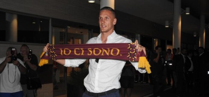 Il giocatore ha posato con la sciarpa della Roma, con i tifosi presenti allo scalo (circa un centinaio) che hanno intonato il suo nome. Domani il giocatore svolgerà le visite mediche fissate per le otto del mattino a Villa Stuart per poi firmare il contratto con il club capitolino.