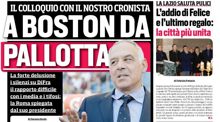 Nell’edizione romana invece il titolo di apertura diventa: “A Boston da Pallotta, colloquio con il nostro cronista”. Nel pezzo si racconta di un James piuttosto deluso per come stanno andando le cose. Su Di Francesco il patron giallorosso non risponde e resta in silenzio.