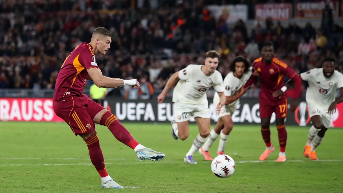 Il finale di partita è stato un vero psicodramma. A dieci minuti dalla fine, il VAR richiama l’arbitro Lambrechts per un fallo di mano di Mandi: il fischietto belga assegna il penalty. E qui succede l’incredibile. Dal dischetto va Dovbyk, che si fa parare il tiro da Ozer. Rigore da ripetere, ma identico esito: l’ucraino sceglie ancora lo stesso angolo, e il portiere del Lille lo ipnotizza di nuovo. Ma anche stavolta il rigore è da ribattere. Stavolta Dovbyk si fa da parte e calcia Soulé: l’argentino cambia angolo ma non il destino, perché Ozer si supera e neutralizza anche il terzo rigore. Tre tentativi, zero gol. L’Olimpico fatica a crederci.