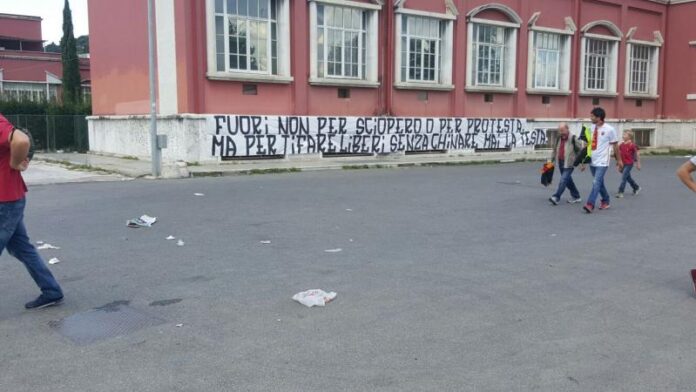 AS ROMA NEWS – La Curva Sud continuerà a non tifare e sostenere la squadra in occasione della partita contro il Sassuolo. Dopo la divisione della Curva Sud in due settori, e le multe per chi non rispetta il proprio posto ,i tifosi, seppur dolorosamente, hanno deciso di rimanere fuori dall’Olimpico e hanno spiegato la loro scelta con uno striscione apparso all’esterno dell’impianto sportivo: “Fuori non per sciopero o per protesta ma per tifare senza chinare mai la testa”.