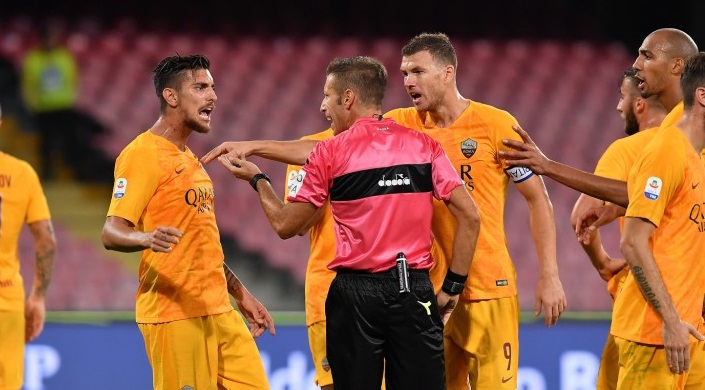 io ripeto noi avremmo pure giocato male fatto il catenaccio come volete voi ma il sig. massa ha fatto di tutto per farci pareggiare cominciando ad ammonire ogni giocatore della Roma (5) e nessuno del napoli e di falli ne hanno fatti, sul rigore se lo va a vedere al var lo deve dare per forza ecco perché non è andato, e negli ultimi 15 minuti fischiava tutto per il napoli di cui 2 calci d’angolo inventati e manco una punizione a favore poi è normale se alla fine pareggi, mettici pure gli infortuni e se albiol non salva sulla linea lo 0-2 ancora parlate de catenaccio o di squadra cinica. Forza Roma