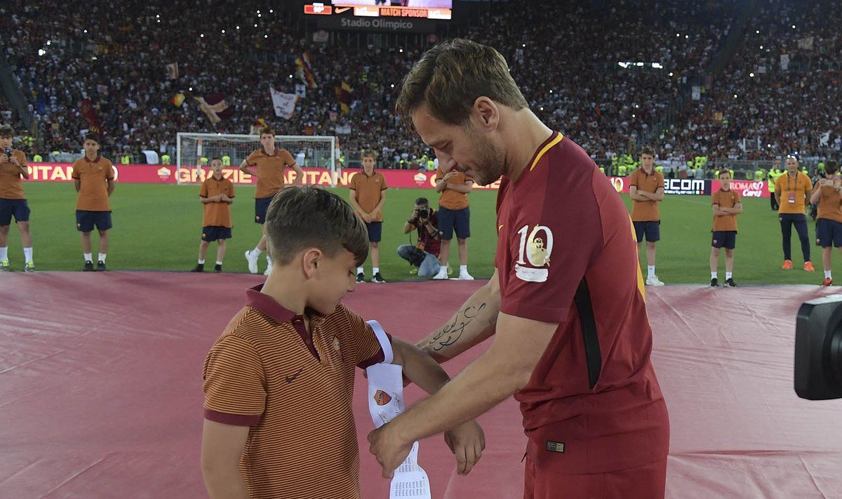 AS ROMA NOTIZIE – Quando Totti domenica si è tolto la fascia e l’ha messa al braccio di Mattia, l’Olimpico (e non solo) si è domandato: ma chi è quel bambino? Si chiama appunto Mattia, di cognome fa Almaviva ed è il capitano dei Pulcini della Roma. Un passaggio di consegne che ha preso in contropiede tutti: dal bambino alla famiglia, che non pensava minimamente che la partecipazione del figlio all’addio di Francesco avesse questo epilogo. Perché si poteva immaginare che il campione potesse lasciare in eredità la fascia a De Rossi, Florenzi, magari al figlio Cristian. La scelta di Totti è stata invece originale e simbolica: dal capitano storico al più giovane del settore giovanile giallorosso. Mattia, infatti, è un classe 2006. L’incredulità che si è letta nei suoi occhi quando ha visto avvicinarsi Francesco, che con la premura di un padre gli ha poi legato al braccio la sua fascia, è un momento che rimarrà indelebile nell’addio del campione. Un gesto semplice che ha fatto impazzire di gioia un bambino di 11 anni che ora è pronto a realizzare un piccolo quadretto – insieme alla numerose foto che gli sono state scattate – per conservare quello che considera giustamente un cimelio.