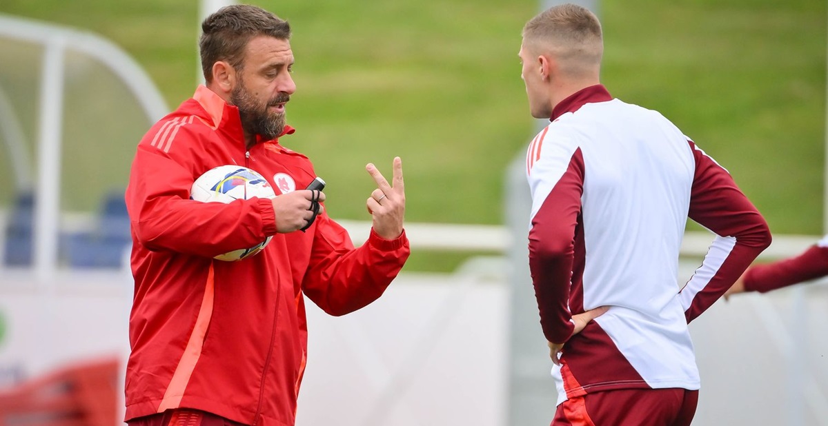 In gruppo Dovbyk (“Mamma mia che destro Artem!“, gli urla De Rossi dopo un cross basso ben eseguito), tornato a pieno regime Baldanzi, l’unico giocatore che si è allenato a parte è Leandro Paredes: l’argentino, ultimo arrivato nel ritiro giallorosso, deve ancora ritrovare la migliore condizione fisica. Presente il direttore sportivo Ghisolfi a bordo campo.