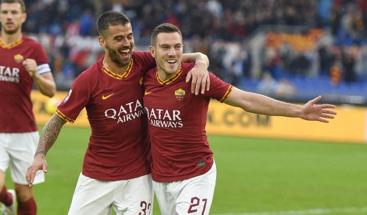Il 4-1-4-1 è nato in piena emergenza, piazzando alle spalle di Dzeko sia Veretout, straordinario nel dinamismo, che Pastore, superbo per la qualità. E, sull’onda del guardiolismo, ha fatto la differenza nell’ultimo periodo. Solo 2 novità dopo il turno infrasettimanale, in difesa: Cetin per lo squalificato Fazio e Spinazzola al posto di Santon. Ribadito lo spartito: Mancini fa il play basso, lo stopper aggiunto e il motivatore scelto. Aiuta i compagni, a cominciare da Cetin, alla prima da titolare. Il lancio di Mancini, in stile Bonucci, per Spinazzola a destra, è il timbro sul vantaggio. Palla a rimorchio del terzino e sinistro terra-aria di Zaniolo per il 4°gol consecutivo.